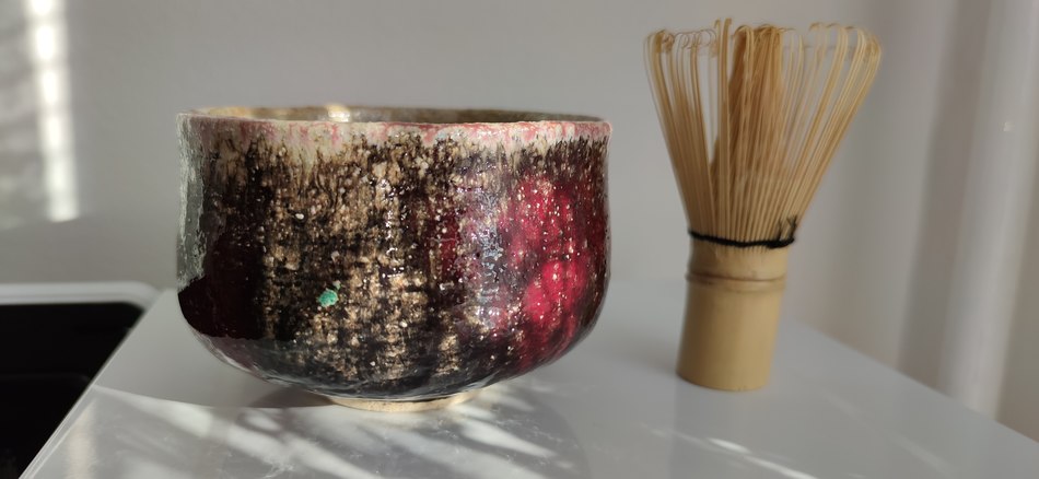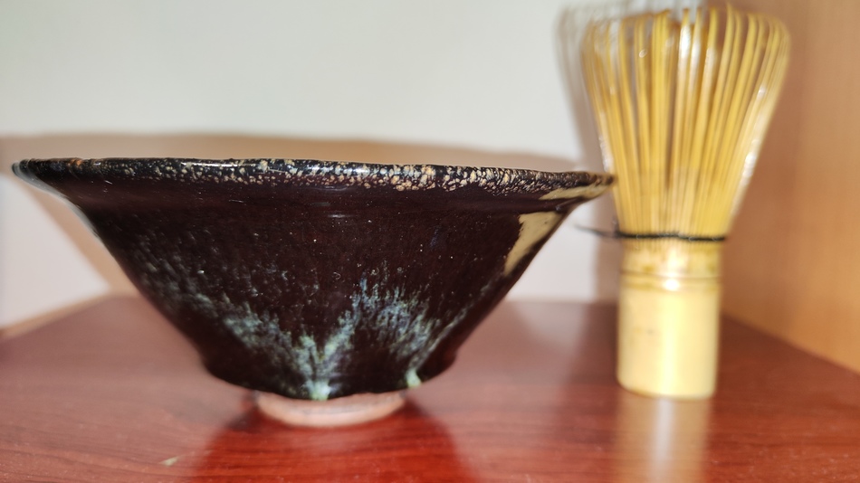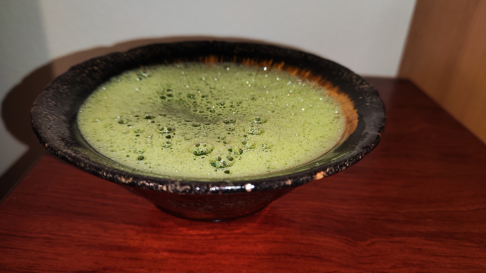 The same idea came in my head when I saw this chawan. I intended to use it for koicha. I was curious I can whisking a froth without making a mess and I was pleasantly surprised how it was easy.