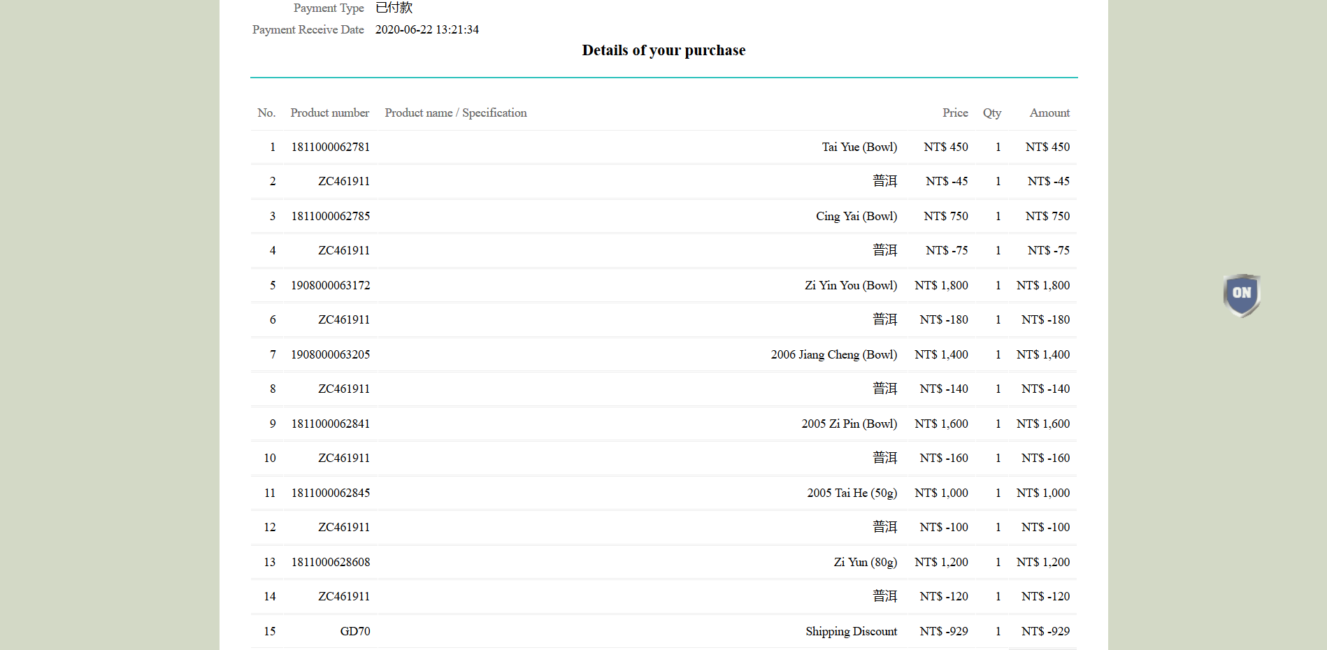 klepto so if you only bought two teas, should be easy to figure out which is which :) . I made an order from a shop in Singapore and was also surprised how loosely wrapped each tea was, with tea dust all over the place. Basically really sloppy, luckily their web site made it easy to figure out what each tea was.