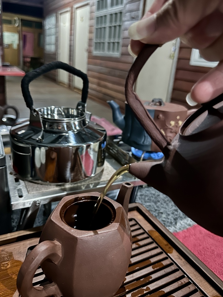 Having some 小黑人 heicha while soft boiling some aged puerh. Busy session brewing for a group of 10 thirsty anglers… 🤣🤣🤣