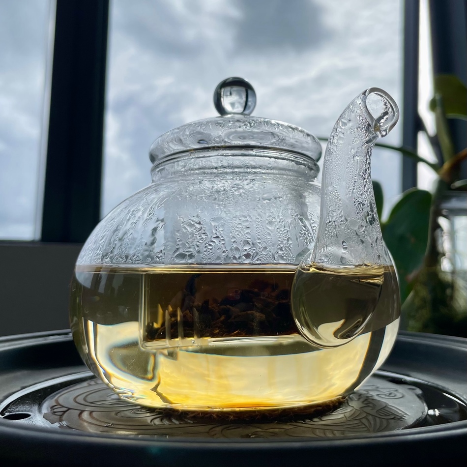 But unfortunately I have not really been able to make it work for a whole session. I get the most out of it with reasonably fast infusions, but the lazy brewing method alluded to in the accompanying letter is not for me. I assume the sheng part of the blend starts to add some less desirable notes at some point, while I am not getting satisfying notes to make up for it. I will have to experiment a bit more, perhaps with lower temperatures as I have always been hitting it with freshly boiled water.