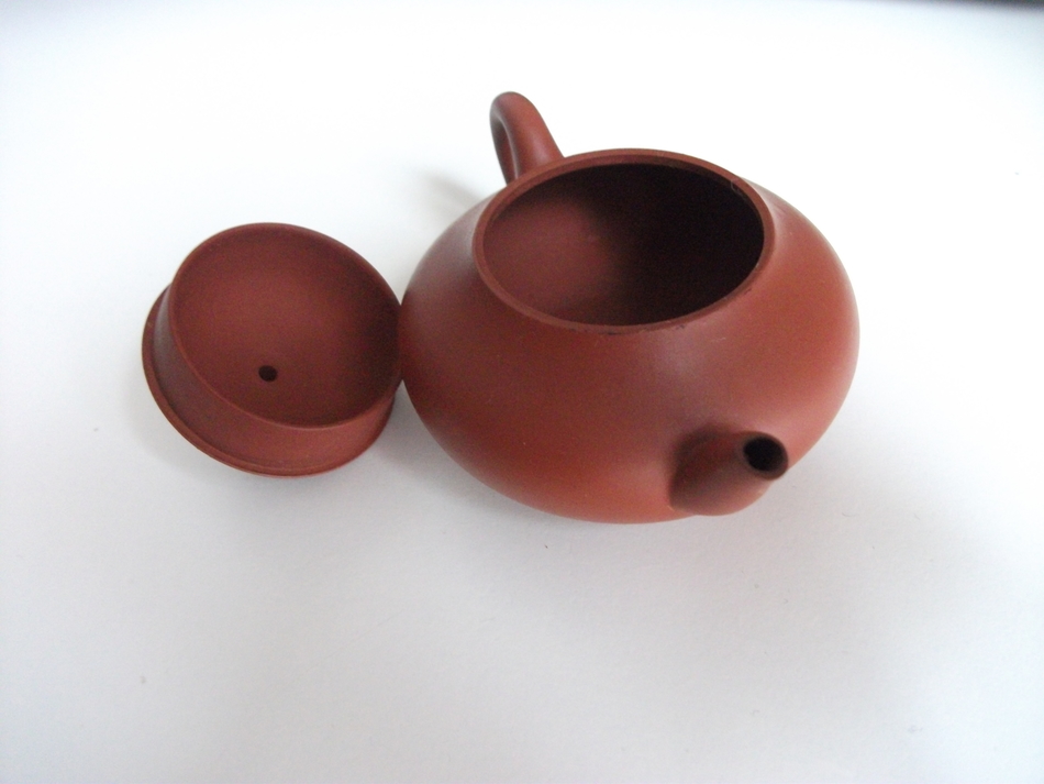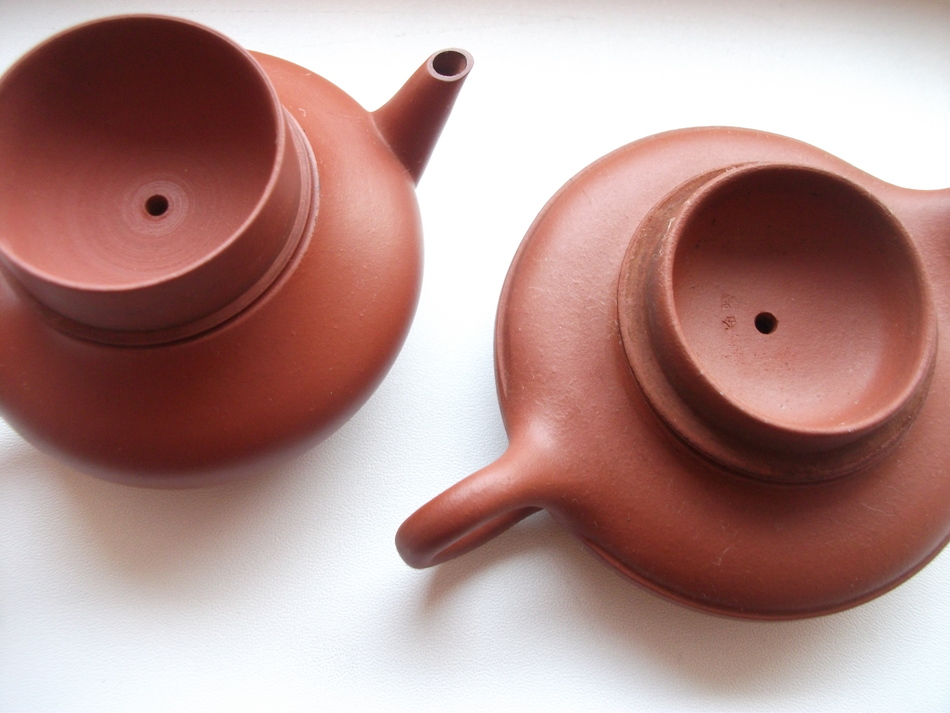 Age wise, if the note it came with from the original owner stuck on the bottom was correct this was purchased in Taiwan in the late 50s. Not looking forward to trying to get that residue off of there though, if it is even possible The last one here I have had for a bit, but I don't think I put up any photos... I got this mainly just for the boat and that I liked the idea of having an intended 'set'. The pot is injection molded, but I was curious still to see the clay since it is supposedly still from the 70s or 80s - the rough shape and printing style of the packaging seemed to fit that, at least 90s if not older. Despite being slip cast or injection mold made, and quite roughly at that as you can seal the line very easily, the interior clay does look not exactly the same but also not too far off from a lot of my other CZ pots. Not exact, but also each one is a different shade of orange/red on their own anyway. I actually have still yet to try it - I need to pick out a tea and give it a head to head comparison. I have to admit I have a bit of a prejudice though, I guess just association that anything molded like that would be really bad clay with additives, but it would be interesting to know if I could pinpoint the production date more though of when CZ started producing molded pots like this and if they all used garbage clay from the very get go.