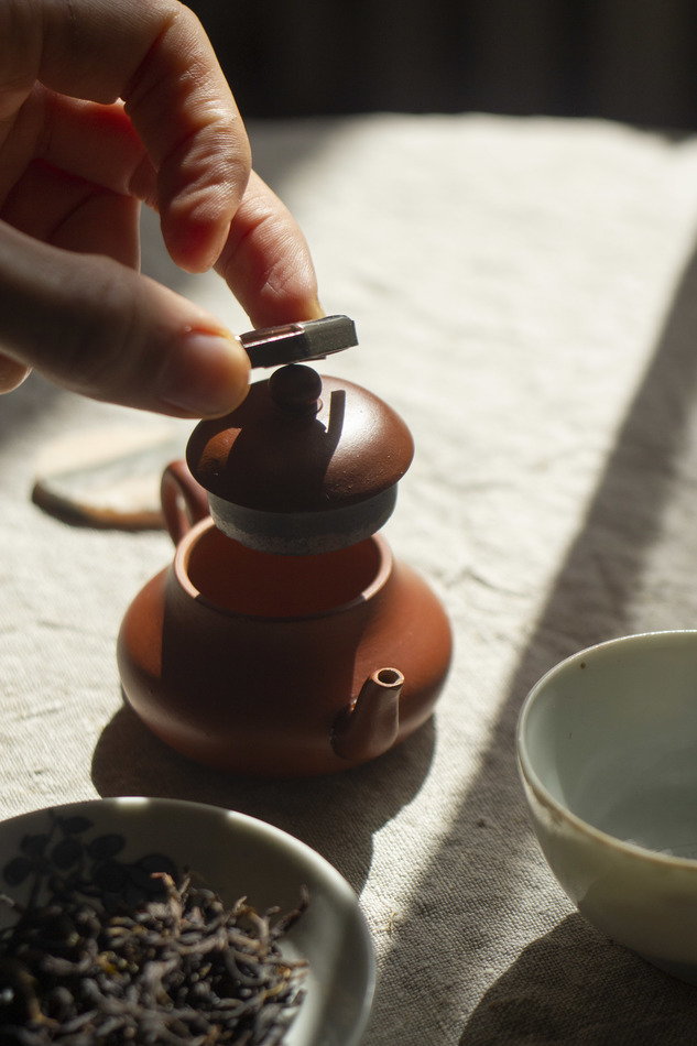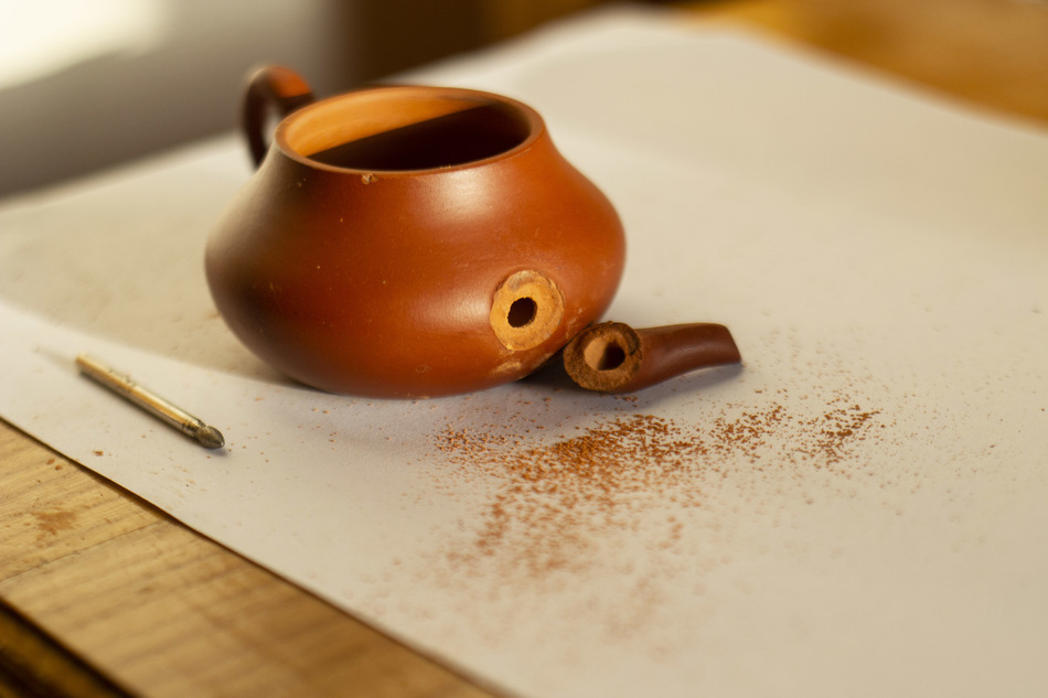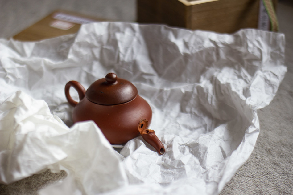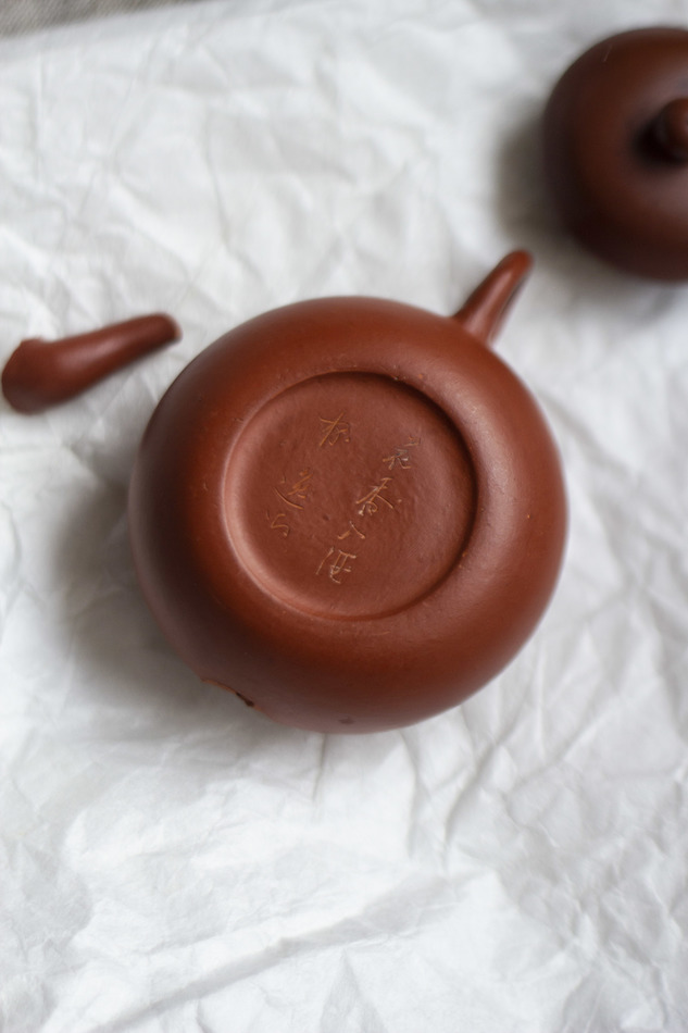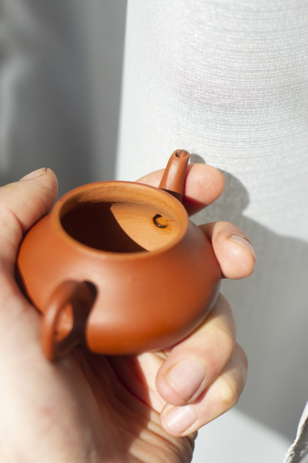 I mounted the spout back with raw urushi paste (used the red dust from grinding some clay to make the pour better) and covered the seam with red lacquer - so now I'm totally happy with the result, and already tried Dan Cong - that's tru that Chaozhou clay makes it rounder, enhancing bright flavors and sweetness. 75 ml is just perfect for a good cup.