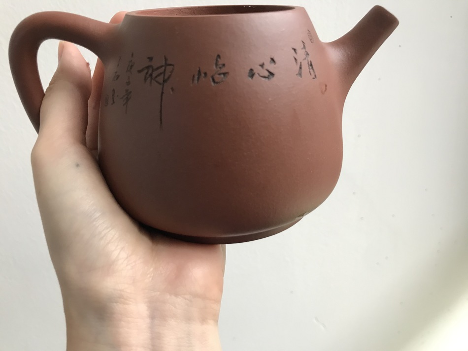 It's supposed to be qingshui ni, which I'm guessing isn't the case. But hopefully it's at least some kind of zisha? It has small little black and white dots scattered occasionally across it, which I've read is generally a good sign.