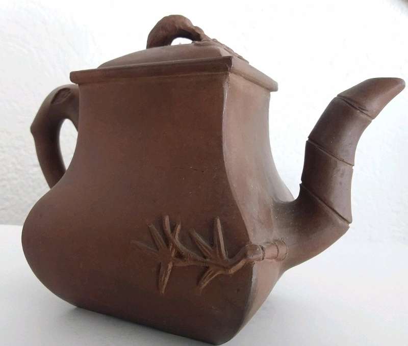 I bought this pot at a second hand store because I thought it was neat and I hadn't seen many unglazed tea pots. I did a little research on and think its a high fired Yixing. I don't think its a fake based on some articles, but would appreciate some opinions from the experienced users here.