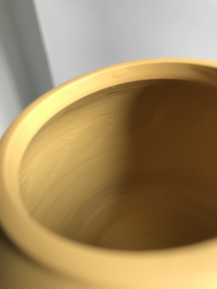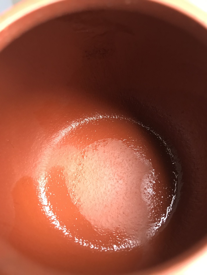 Mmm this pot on the right looks wrong too. Hard to tell exactly what it's mixed with without running some tests, but it looks muddy/slurry and way too yellow. There are many kinds of duanni, but none that can look like that to my knowledge. If I had to guess, I'd say there probably isn't any duanni in those pots, they look like very liquid clay (not zisha) with some added colorant.