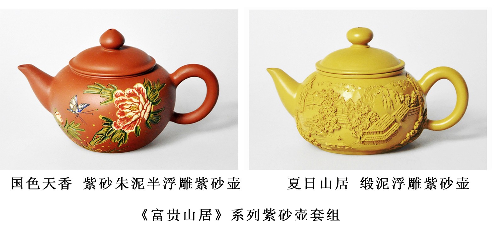 《夏日山居》泥料取材选取江苏宜兴黄龙山开采的上等缎泥,将元代王蒙水墨山水画“夏日山居”转化成浮雕工艺,同紫砂艺术相结合创作出的新的艺术种类