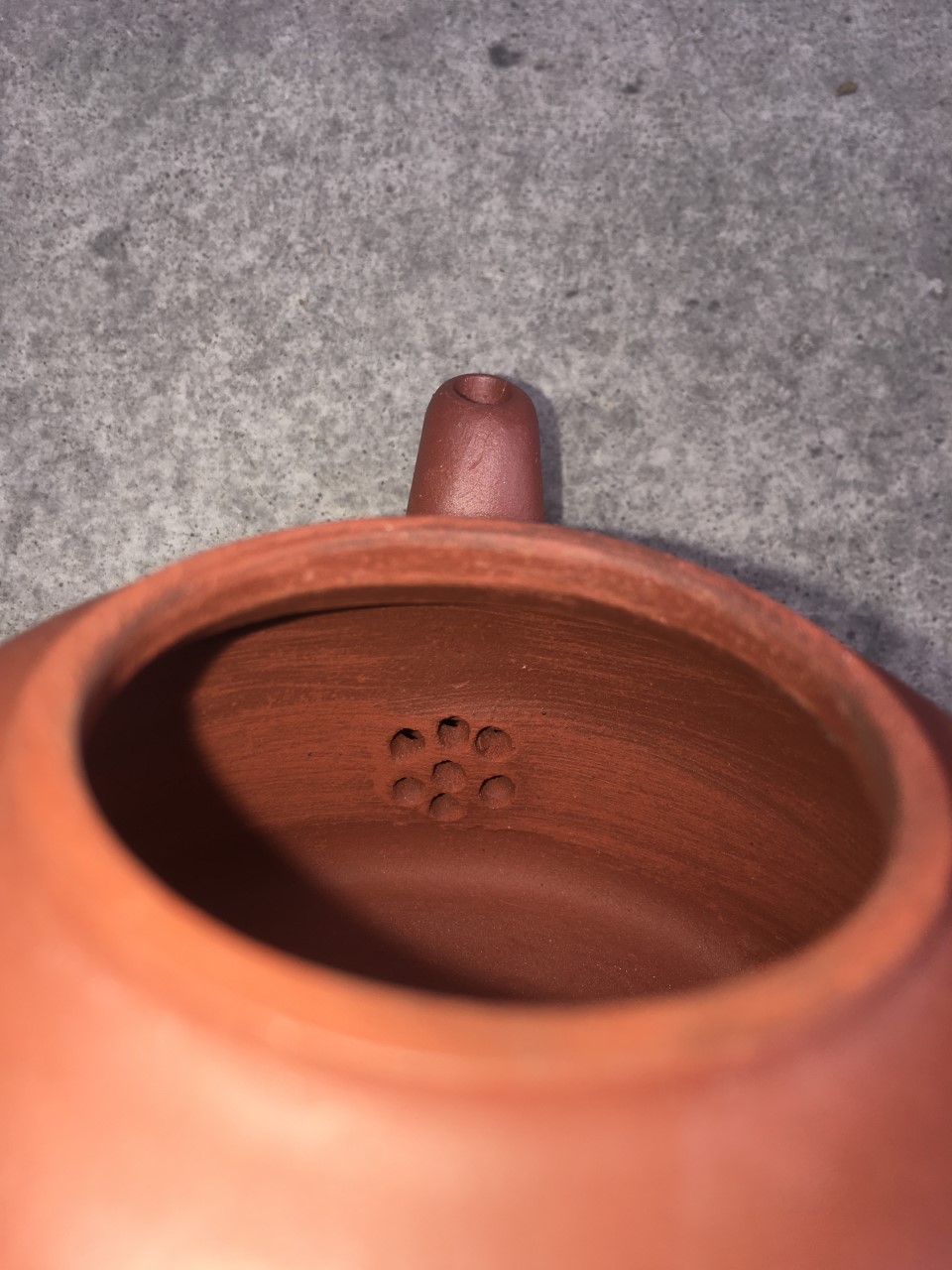 It’s night time here, I’ll take a few more photos tomorrow. The filter area certainly is weird. Initially, I thought previous owner used an abrasive pad or something to clean the inside, but when I examined closely, it looks more like brush mark. The outside has an even orange-red color tone that’s darker than inside.Bok wrote: ↑Wed Mar 03, 2021 9:01 pmGot more pics of the overall pot? Looks odd from these images. That filter hole area looks very weird...DailyTX wrote: ↑Wed Mar 03, 2021 12:40 pmI have been learning more about hongni category, and I came across this pot. Initially, I thought it might be 90s F1 pot as it has a F1 potter's mark. I think it has been painted with a dark tone of material on inside and outside. I am not sure if this is done in 90s F1. What do you think?![]()