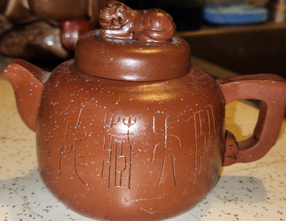 crouching tiger/hidden dragon, same as the Ang Lee movie (https://en.wikipedia.org/wiki/Crouching ... den_Dragon), hence a fairly new teapot and I am sorry to say, a low quality expression of it. I got another of this topic gifted a long while ago, similarily dubious clay. Actually a fun topic to do, but haven't seen a well done version of it.TracieJoy wrote: ↑Mon Nov 14, 2022 2:54 pmHello, I'm new to all of this and have just gotten my first teapot. I'm wondering if this is an actual Yixing teapot. Also, there's an interesting dragon under the lid, and a foo dog on top. There are carved characters on the sides and a seal mark underneath the pot as well. Looks like turquoise speckles throughout that match the little dragons' eyes. Can anyone give me any information about this adorable little pot? I'm really curious to know anything about it. Thanks in advance!