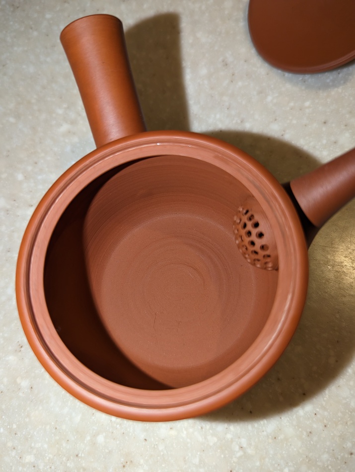 Nice kyusu, looks like an older Yamada model. And older clay, more brown orange shudei. Brew sounds nice from description of clay’s affect on tea.
