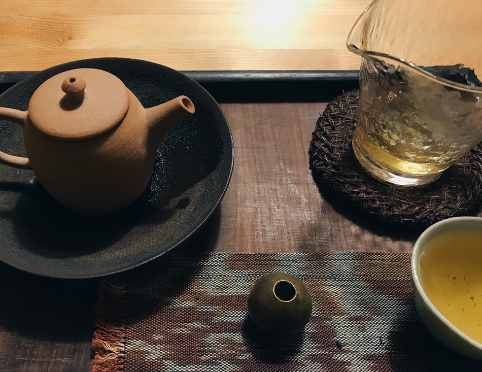 One thing I find interesting is in older kyusu sets the yuzamashi is usually smaller than the kyusu and five cups. I think the kyusu is not intended to be used to full capacity, and cups are intended to be filled only halfway or less. I’ve become accustomed to the ease of using an electric variable temperature kettle, and since I have several beautiful yuzamashi that I love handling, I now use them in a non-traditional way to measure dry leaf on a scale. The indented spout makes pouring dry leaf into a kyusu super easy. But when I do use a Tetsubin or clay kettle, then I’ll use a yuzamashi as intended to calibrate water temperature for Japanese teas.