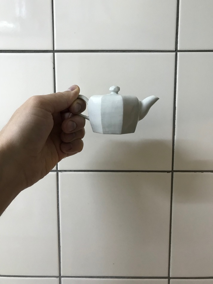 I had been on the lookout for a universally usable teapot in porcelain for sampling needs and the odd tea out. Somehow I could never find anything in porcelain that I liked, either kitch, too perfect or too expensive. Antique Porcelain often being too large or overly decorated.