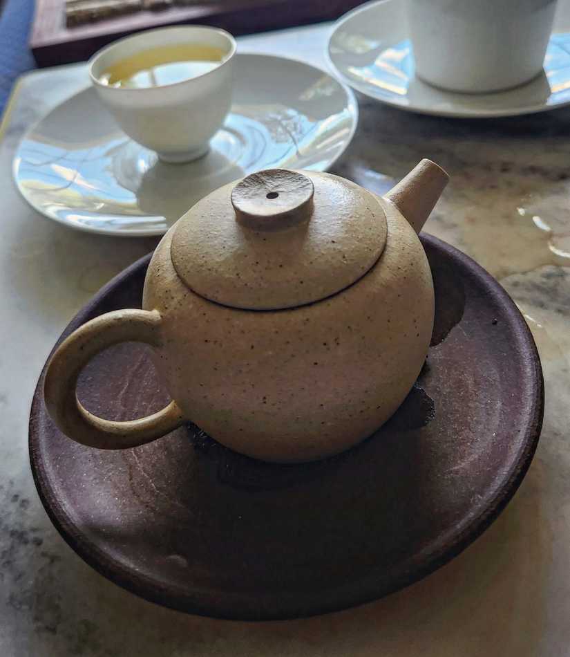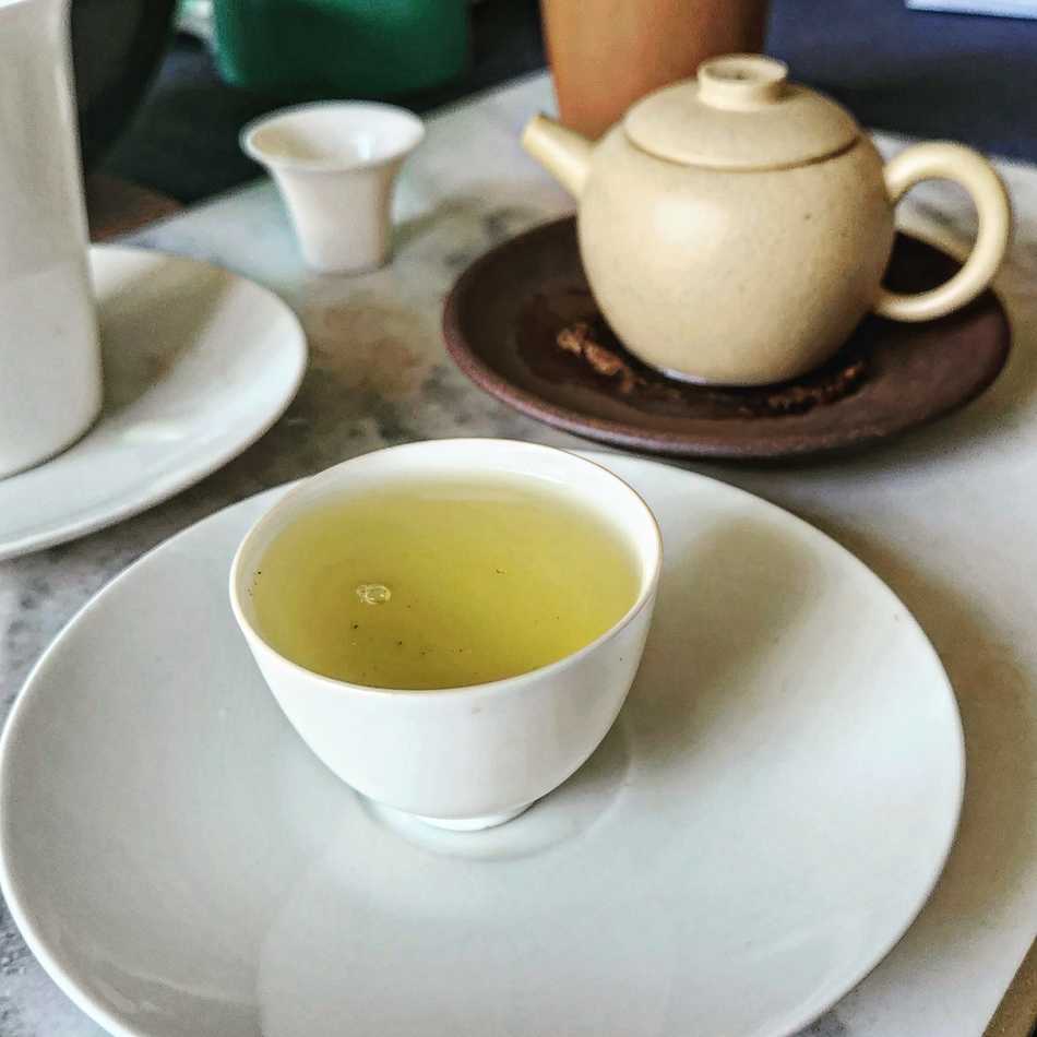 The first green was a JinXuan that was all about umami and fresh peas, and the second one was a different cultivar that was much fruitier and cooler, more about the long aftertaste.