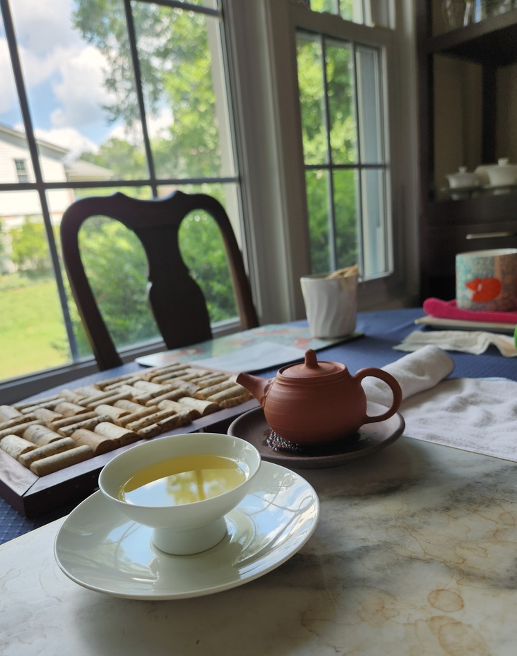 The perspective I gained was that of setting. The best ‘material’, in the most sought after teaware, prepared in the way of a tea master, can only be as good as the setting which it’s enjoyed. The setting has a huge impact (for me, I’m realizing). Easy to experience this while on a trip, kind of like that French croissant in a Paris cafe, a wine in a vineyard in Tuscany or wherever.