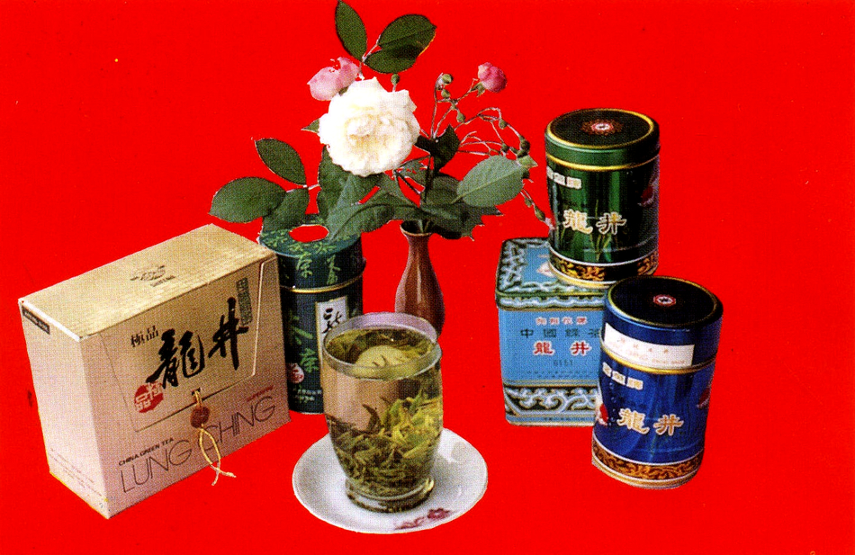 Some advertising shots from 1988 that include Shifeng packaging and maybe Sprouting on the left and Goldfish and maybe Sunflower on the right, also one of longjing being made. It looks like by this time the idea of serving long jing in a glass had caught on?mbanu wrote: ↑Fri Feb 05, 2021 10:15 amAn example of a Shifeng longjing, and more!mbanu wrote: ↑Mon Feb 01, 2021 9:20 amSome help from the Zhejiang Tea Group, which seems to be the website for the de-nationalized version of the Zhejiang Tea Branch (although somewhat astonishingly for a Chinese tea website, it has an HTTPS connection!)