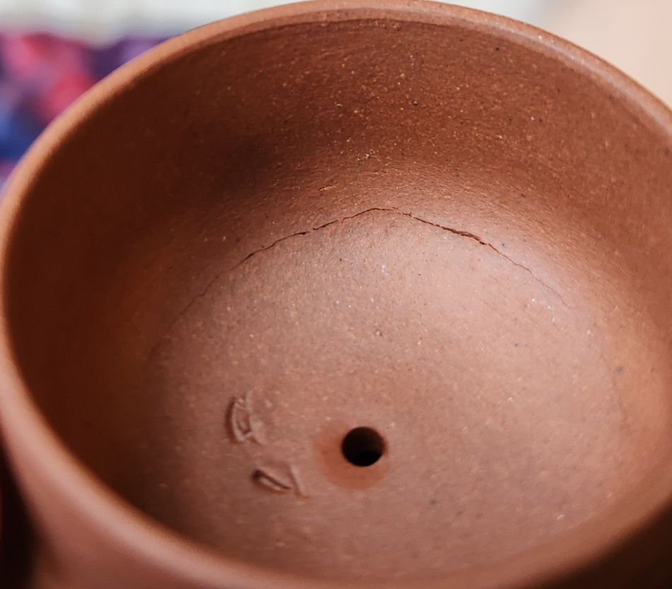 Interior crack inside yixing lid