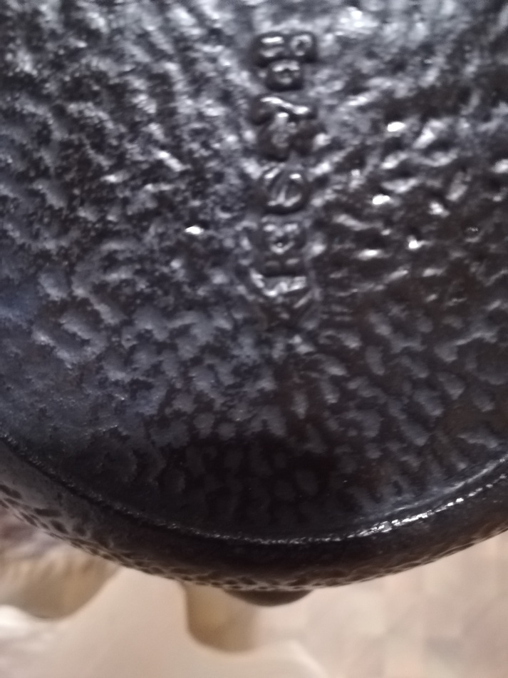 Update on the tetsubin lid. I was debating on using the traditional urushi method or the western method of restoring cast iron cookware. Due to lack of experience and materials here in the west, I decided to use the western method. The lid was heated up on a gas stove for about 30 minutes per side, and scrubbed with iron brush to clean off old urushi finish. The lid was rinsed in water to clean off the burnt particles, and then the whole lid was submerged in pure vinegar for about 2 hours. Fine steel wool was used to clean any uneven color surface, rinsed in water, and dried with a cloth. The outer side of the lid was oiled with grapeseed oil, and then heat it up again for oil to absorb into the iron. Not the best looking lid but it looks much better than the original photo
