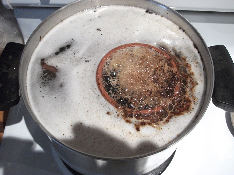 After a good scrubbing, the filter is clear of gunk and I'm onto soak #2. I don't think 3 soaks are necessary. For something so "rough" looking, this pot has a perfect pour. No drips whatsoever!
