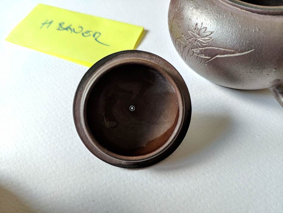 Will take better pictures once back home end of the week but inner was just stained with heavy use. Outside seem like coated with something metalic/violet. Thanks for helping me to solve this.m. wrote: ↑Wed Nov 20, 2019 2:08 pmThe teapot looks to be 90's or newer. I can't figure out from the photos whats going on on the surface, but now it almost looks to me like it has been artificially stained with something both outside and inside? (If that is the case, you might have to use a sodium percarbonate or a bleach or whatever it takes to clean it.)