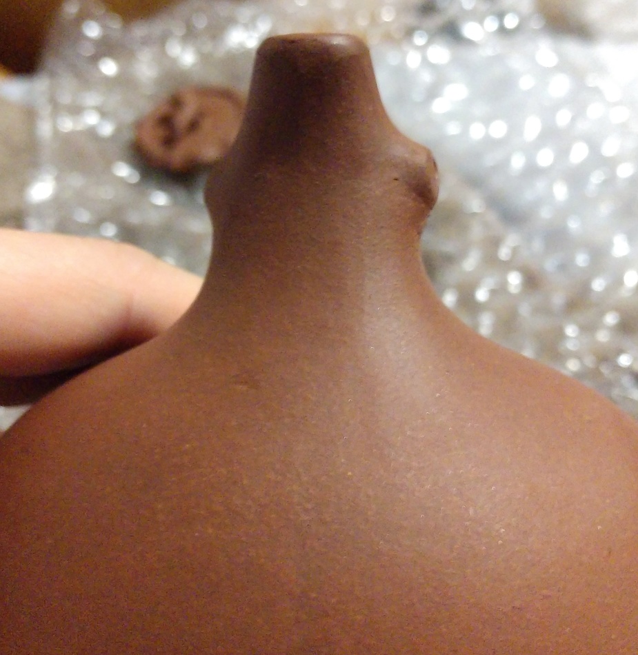 I have just bought a new teapot which looks similar to the one you are selling on eBay (except for the lid). What do you think? The teapot has a 7-hole filter. Unfortunately, I cannot show you pictures of the inside because it is VERY dirty. The teapot looks genuine to me, but I have not found a teapot with a similar lid knob yet. The size is about 660cc. The pour is good, but it drips from the lid.