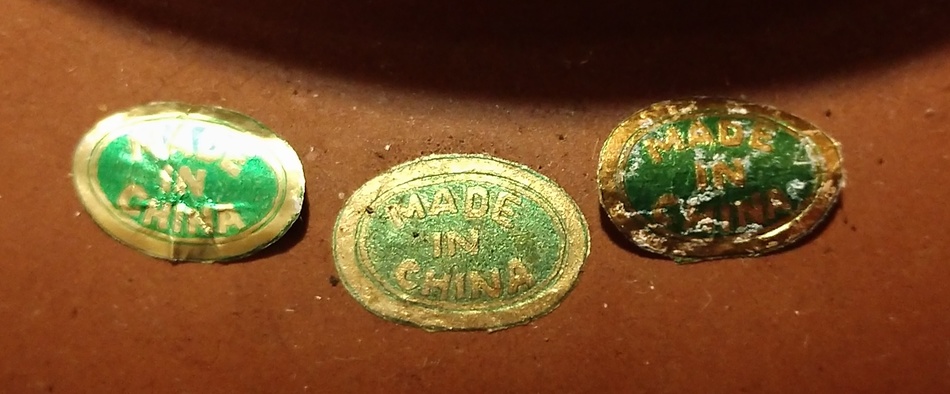 While a fake sticker on authentic pot wouldn't be inconceivable, it definitely creates questions.