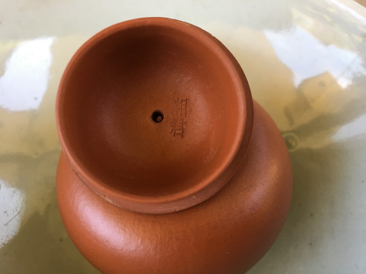 One more picture at the insideDailyTX wrote: ↑Wed Apr 22, 2020 3:30 pmSince this thread has been so active in the last 24 hours, I want to ask for your opinions on this zhuni pot. The pot was purchased during my China trip last summer at a teaware shop in GuangDong area. The shop sold mainly modern pots; however, the owner has her own collections of antique teawares that's not for saleMost of the pots at the shop were relatively large, I would estimate 150 ml+. I came across this tiny zhuni pot and asked the owner about clay, when it was made, etc. The owner said it's from a old batch of Zhuni pots she ordered in the last 10 years, and it has been sitting there for a long time because people in the area didn't like small size pots. I put the pot down and move forward to explore her shop. The owner and her assistant were working on their online order, and just let me and a few relatives to explore her shop freely without pressure to sell. I ended up picking this little pot, price was transparent as it was labeled on the bottom of each pot, and this cost me about $500 yuan. I don't expect anything fancy, I just want to see if this pot has any warning signs that you guys may noticed such as chemicals and additives.