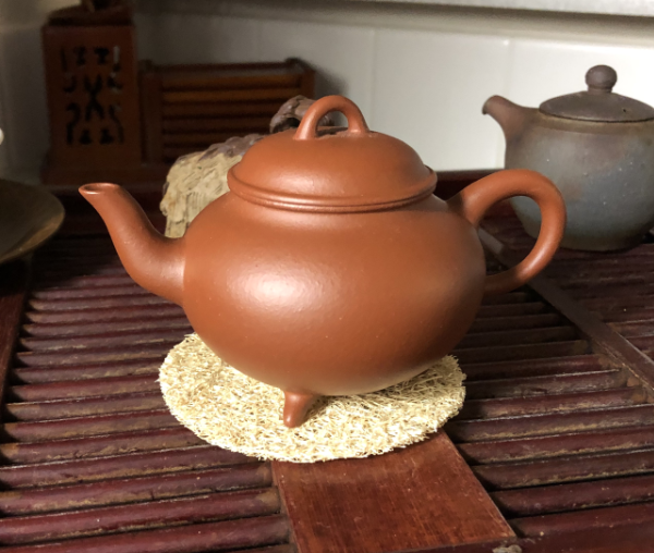 I had been looking for a round, three-footed pot for quite some time--there are always a few out on the market, but none of them were aesthetically very pleasing to me. But this one was just so elegant and well-balanced, I couldn't resist. I have two sessions with it so far, one with a honey orchid phoenix oolong and one with a raw white puerh, and it delivered a lovely brew and preserved the fragrance notes on both.