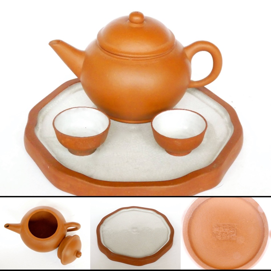 I was told by a seller that this tea set was purchased in SF Chinatown in 1948 by her grandmother. She was also selling a bunch of other junk that looked like it was found in an old persons attic. The pot looks old enough to fit with the story I was told. The price was too low and I had to rely on these crappy photos.