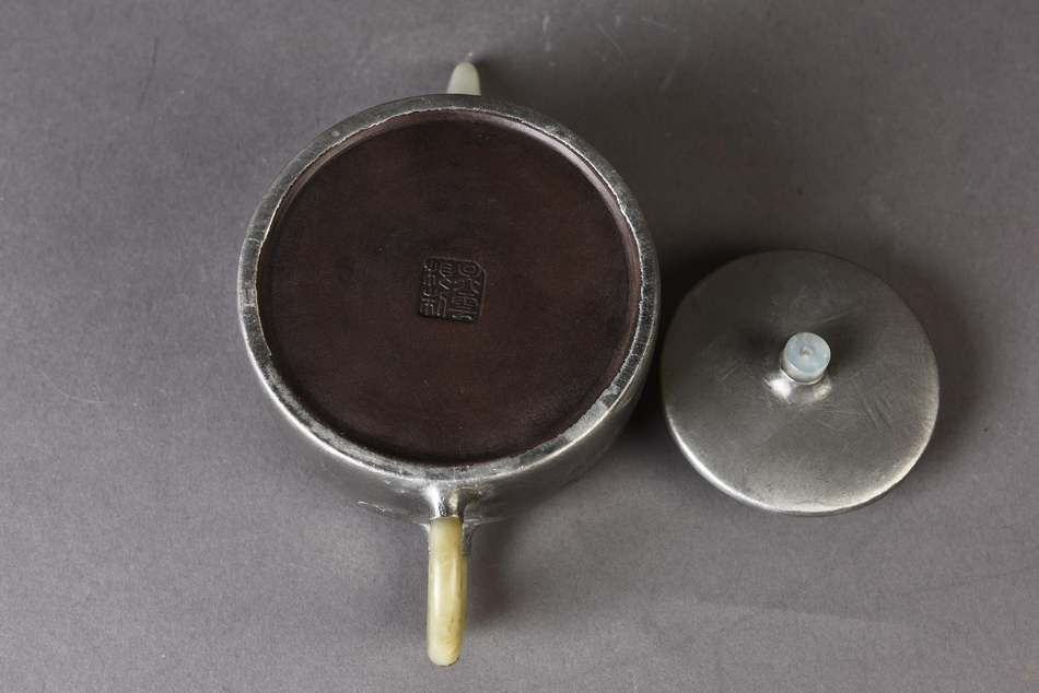 This is a modern replica of a style of pewter-encased Yixing teapots that was popular from the end of the 18th century until the mid of the 19th century (my avatar is an example of an authentic one). I recommend not using this to make tea, it might not be safe.