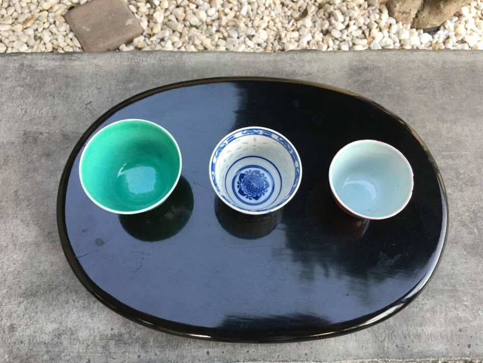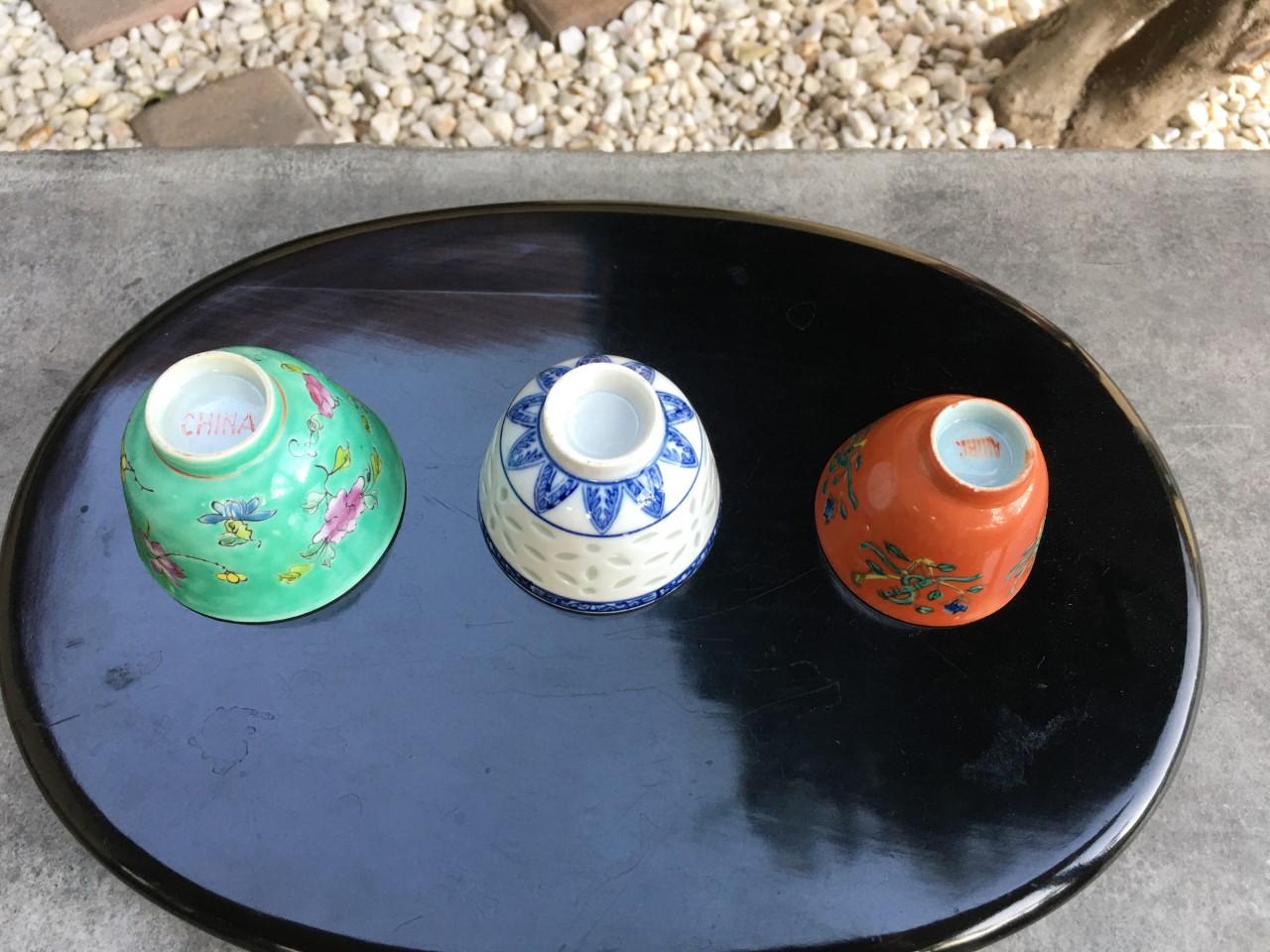 For what it's worth – a lot of these red one were actually mainly used for the house altar to pray to the ancestors. Set of three filled with tea or alcohol.