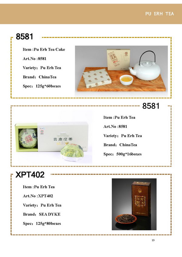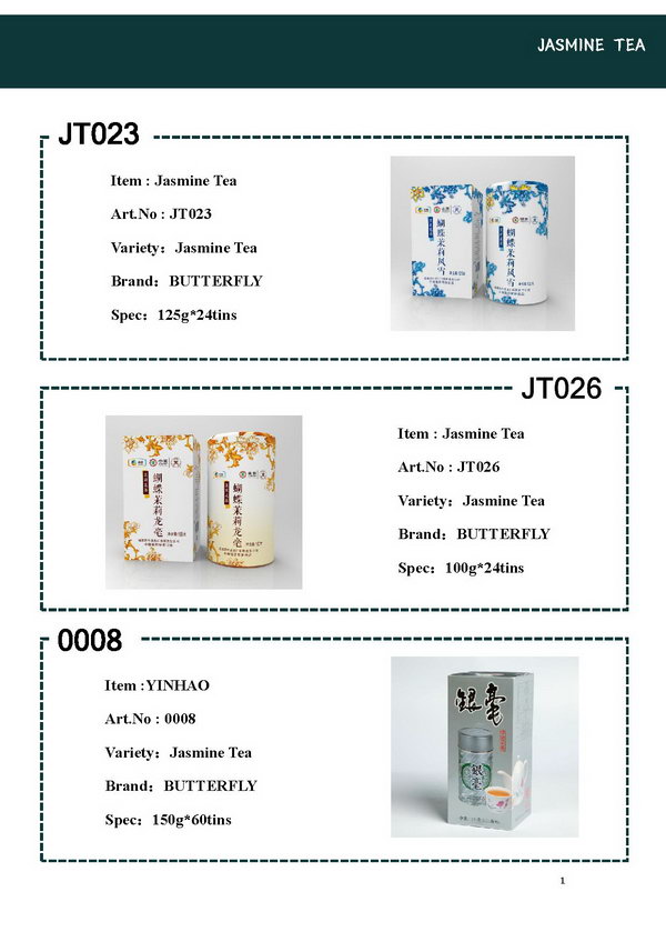 A 2020 export catalog from ChinaTea! Butterfly, Sunflower, and Sprouting all being used concurrently to sell jasmine tea, and also Sea Dyke and Monkey King -- there must be some sort of pattern behind which mark goes where???