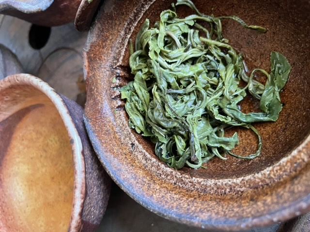 scent like cooked peas, tea is delicate, a hint of floral, a little cooked spring vegetables; leaves are lovely rich green