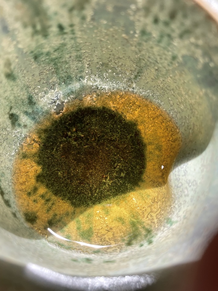 about 100mL water just off the boil, 30 seconds or so: the smells rising off the liquor, enjoyed in a tallish Tetsuki Nakao Spring Galaxy yunomi to capture the scent, are just as promised from the dry leaf. It's sweet, honey and raisins and dried cherries, so nice.