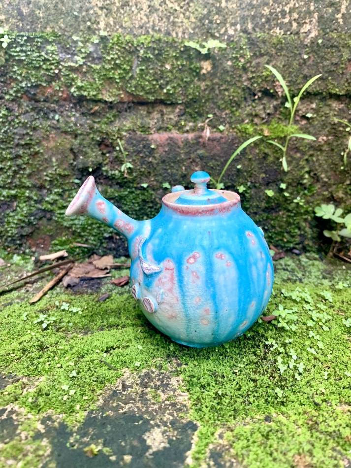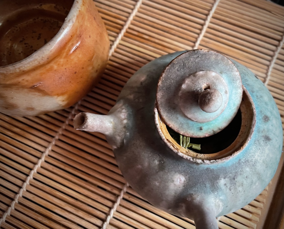 and to the latest addition is my little brewing cauldron ! 120 ml Yamada Sou wood-fired Aoyu Kyusu , and becomes my current favorite too , LOVE the color , the discoloration, the shape , the beauty and the functionality .