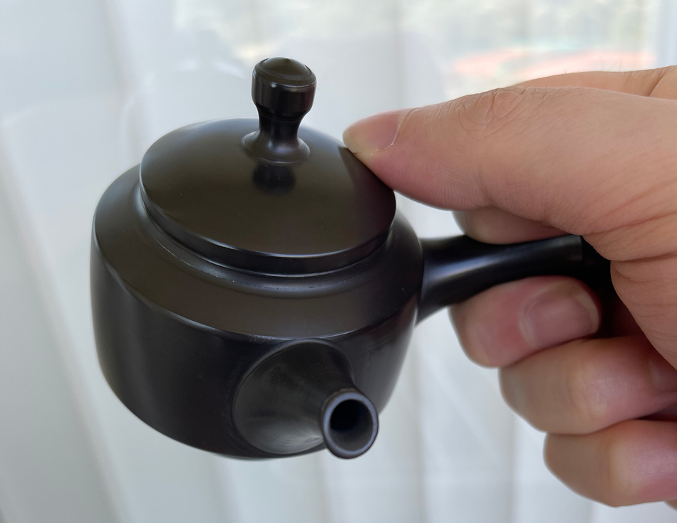 @blkgreymon: Good control when pouring, whether slow or fast (<8s from brimfull to empty); no drips. It's also surprisingly good for one-handed brewing with boiling water: handle grips naturally a bit further away from the body than other small side-handle kyusu I've tried, but it's still easy to reach the large knob, if the lid is burning hot. The whole thing feels very well thought out, I love it.