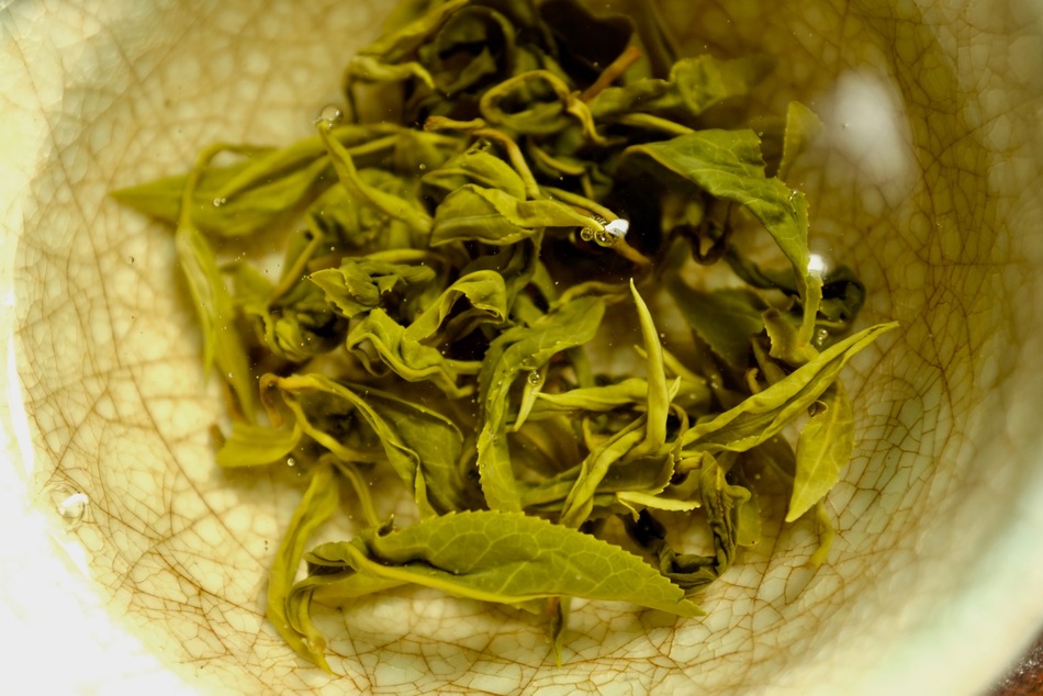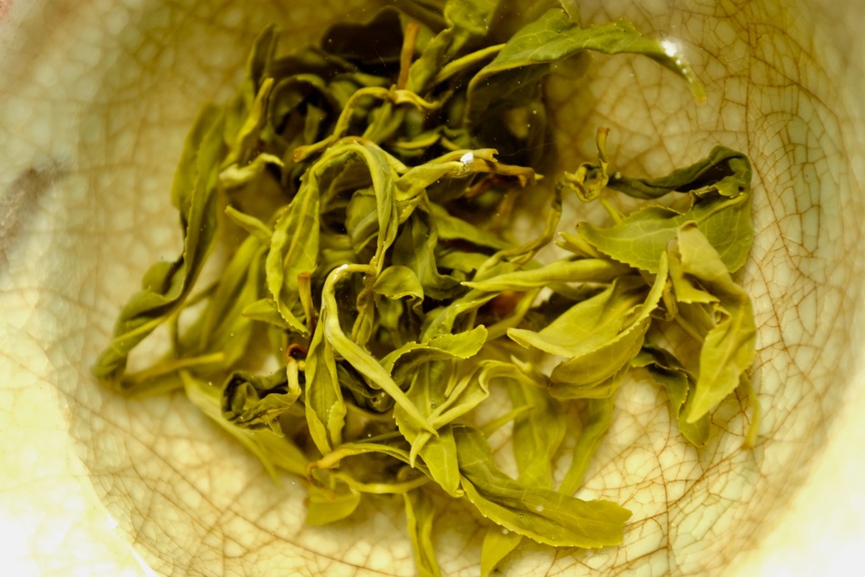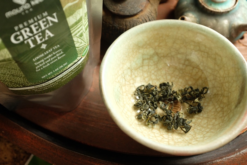 Last session from this vacuum, sealed pouch of Orchid Dew green tea from Hawaii’s Mauna Kea Tea: I just wanted to enjoy the beauty of the leaf, so I put way more leaves than I usually do into the Flower of Forgetfulness for a grandpa style brewing experience.