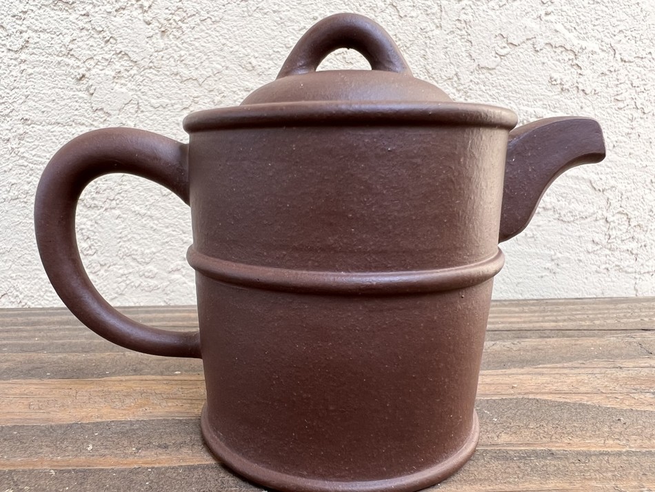 The clay certainly looks nice and high fired to me, it is obviously dense, no porosity, with a lot of iron spots, an interesting texture and different from my other modern Zhuni pots. Along with the small volume (which seems hard to find in the fully handmade market) and weirdly practical looking shape, clay curiosity was the main reason for the purchase. Despite not having particularly thick walls, the size and shape make the pot feel reassuringly chunky. The pitch is clean and high. It should make a good solo duty workhorse!
