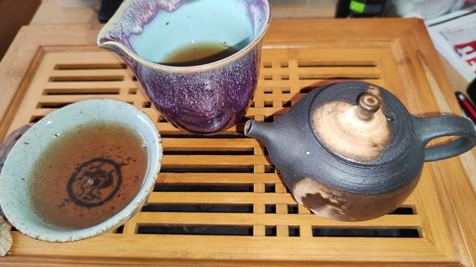 Drinking some of EoT's Zhang Hui Chun gushu (not technically 'yancha'), and thinking about the very different ways in which yancha can present itself, while enjoying the feeling and aftertaste of this one.