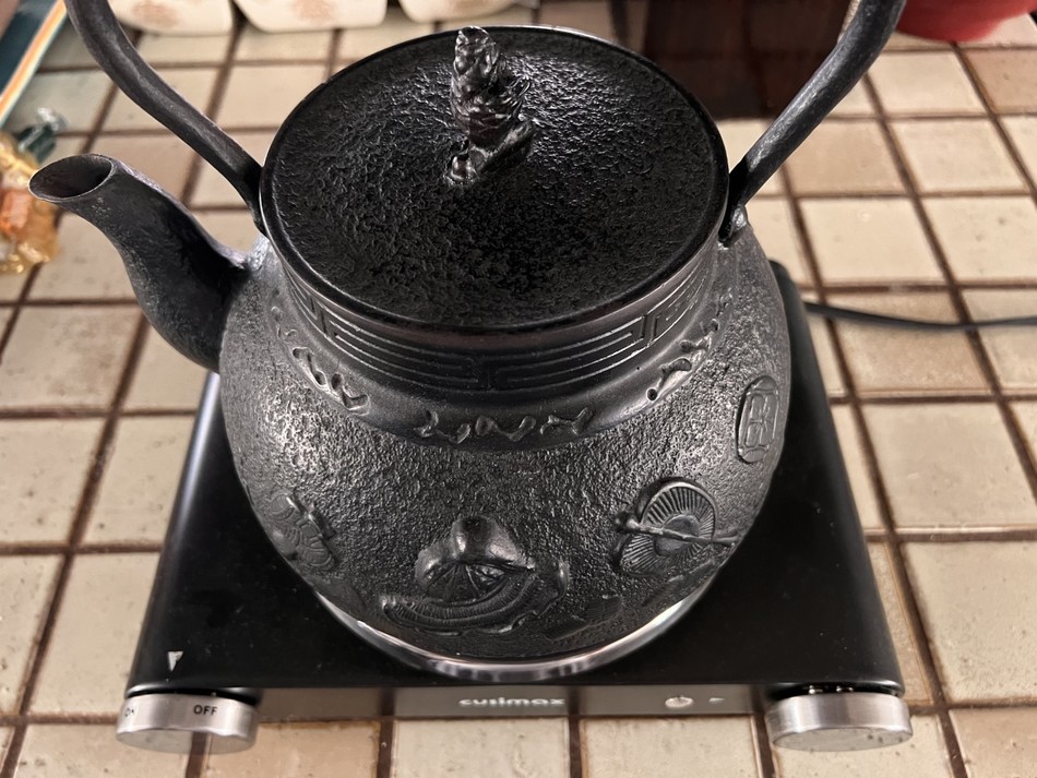 Playing with some of my teawares today. Vintage Iwachu Tetsubin, JLZ pot, and brewing some 2003 HK Henry 7542. Cheers!