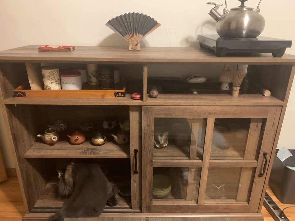 I keep them relatively high so that my toddler can't reach them- though she has her eye on the tiny pre 77 hong ni in front of that brown pot you are asking aboutTeaGrove wrote: ↑Sun Jul 17, 2022 5:18 amI think that would be the danger... and the dusting!LeoFox wrote: ↑Sat Jul 16, 2022 11:06 amI really wish I could have a room and setup like this, hahaha. The danger is that then there is pressure to keep buying more pots to fill the spaces. Maybe similar pressure for those who get a pumidor- a few cakes just won't do, even though that's more than enough to drink.![]()